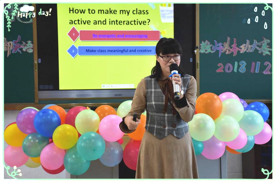陈翠玲老师结合自己的教学实际,用活泼可爱的方式向我们诠释了如何让自己的英语课堂活跃。