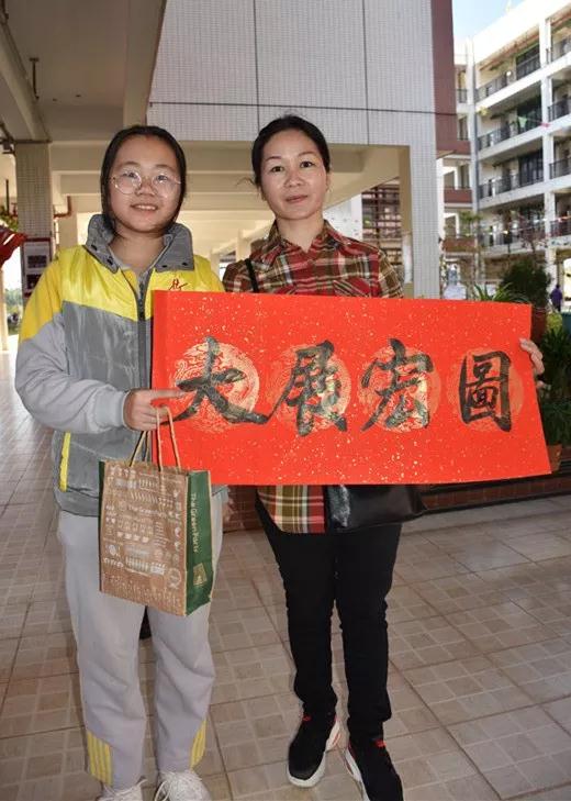 书法家们或端庄雄秀或飘逸秀美的字体令围观的家长和同学赞不绝口、爱不释手,要了一副又一副。