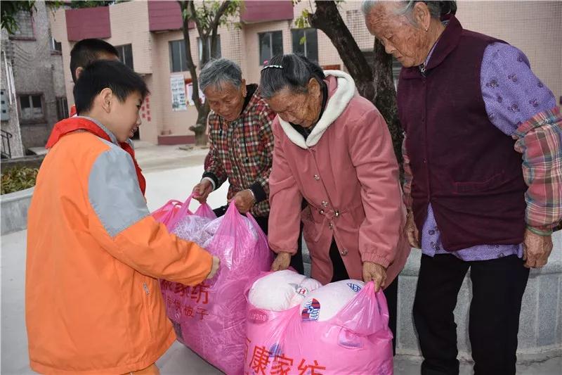 1月16日上午,黄广增城学校孩子们敬老、爱老活动在老师、家长的陪同下如期开展,把春联义卖所筹集爱心善款全部购买生活用品,探访石滩镇敬老院的孤寡老人。