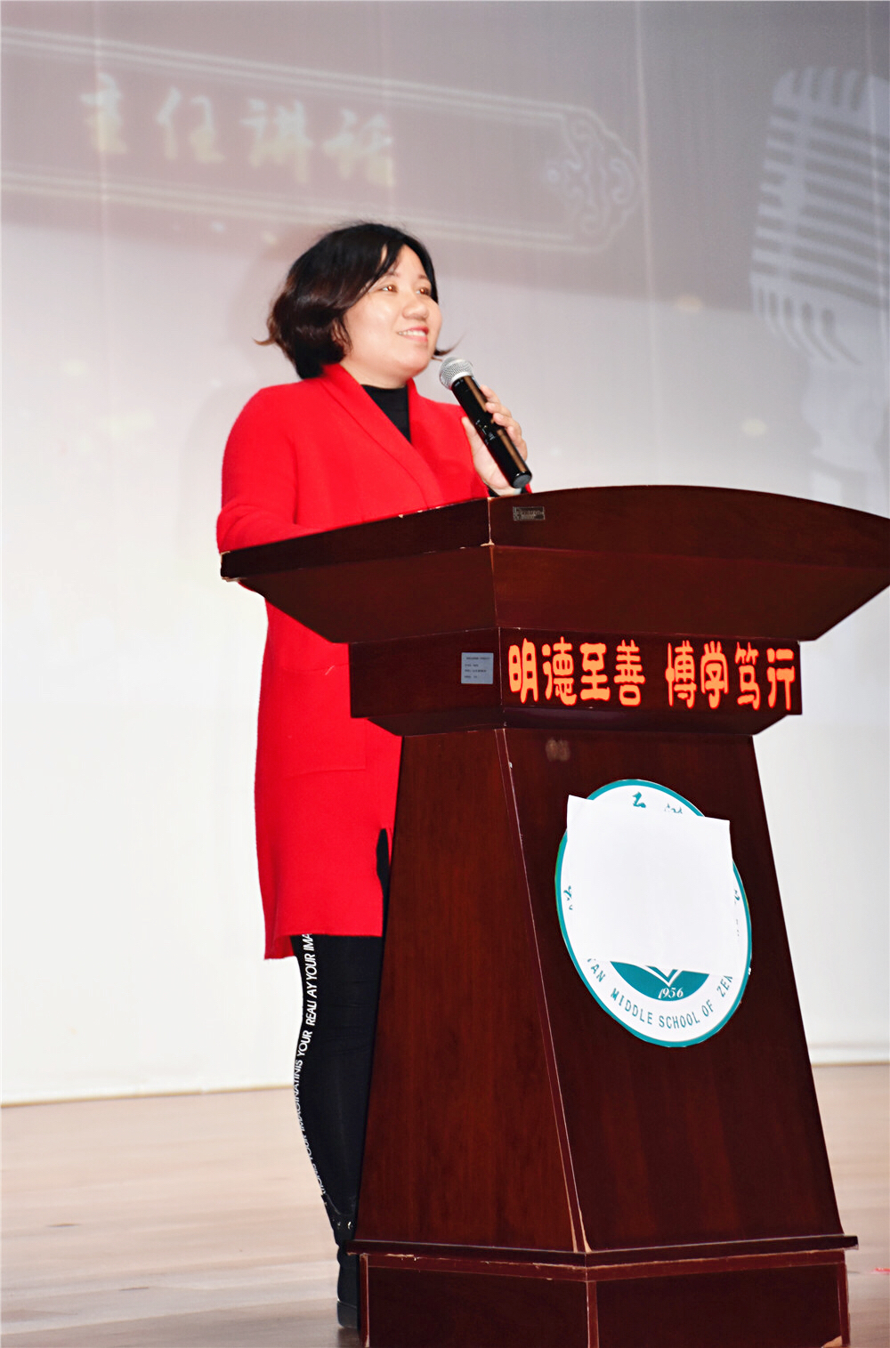 优秀教师代表——七年级英语教研组长张金蕊老师为孩子们传授高效而有趣的学习方法,对孩子们提出殷切希望。