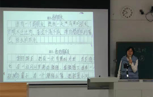 黄广增城学校袁妙老师主讲的《作文选材》现场作文课,讲、演、练结合,妙处横生,无论是学生还是在座听课的老师都收获颇丰,得到了区教研室张小娅老师及各研讨小组老师的好评。