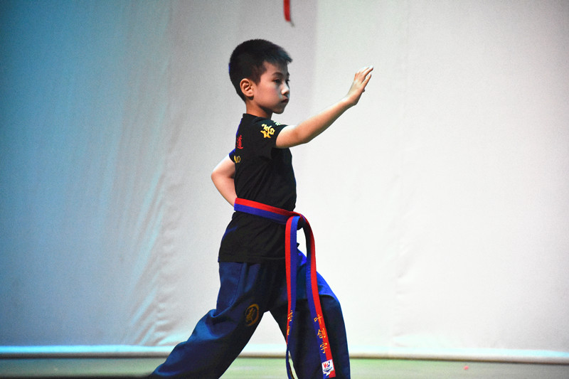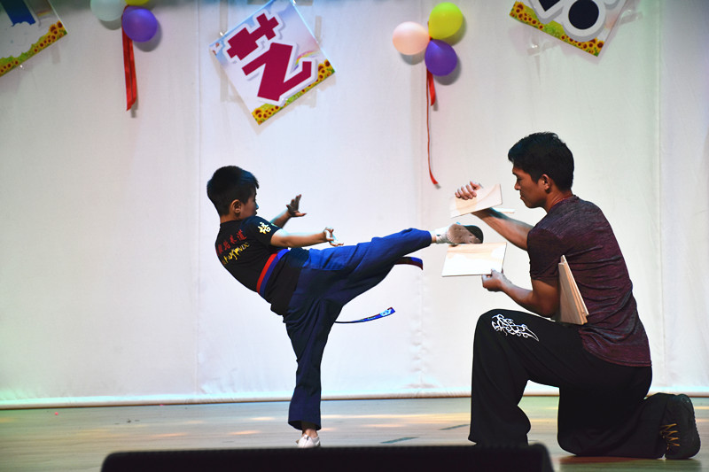 小小甄子丹为我们表演中华武术,单手单脚劈砖。