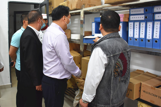 在蒋晓明校长的带领下,骆书记一行实地察看了校园环境、学生宿舍以及校园安全防范设施等,重点参观了师生食堂,详细了解食堂食品留样检测、仓库食材储存管理等,并对我校安全管理工作表示充分肯定,提出了更高的管理要求,同时对学校的整体长远规划提出指导建议。