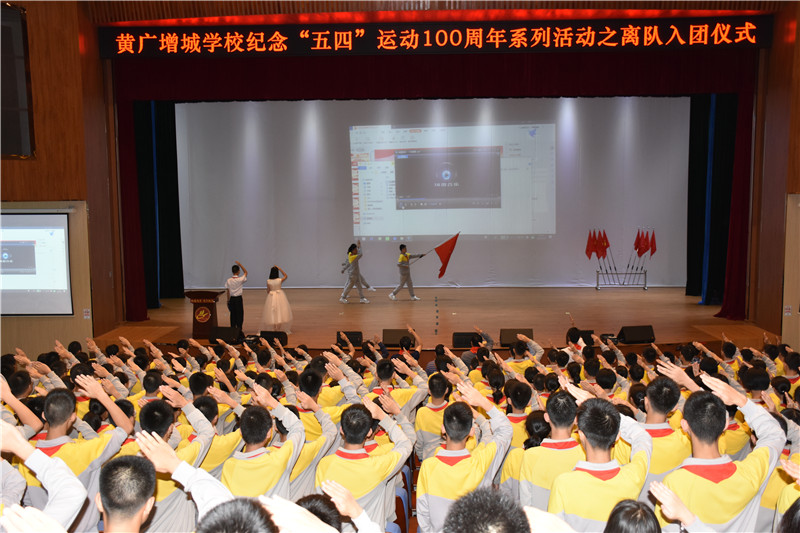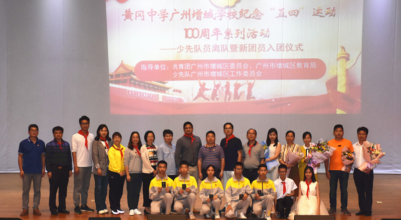近日,黄冈中学广州增城学校(简称黄广增城学校)隆重举行少先队员离队暨新团员入团仪式,纪念“五四”运动100周年。增城区少年宫郑立辉主任、区少先队汤伟成总辅导员等嘉宾出席仪式。