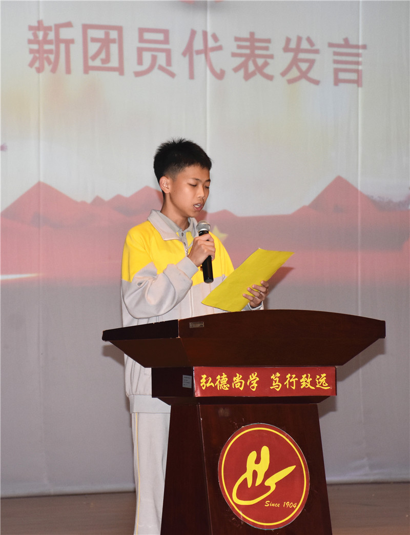 最后,蒋晓明校长讲话表示,殷切希望新团员以入团作为新的起点,坚定理想信念,牢记入团誓词,用一言一行来诠释誓词;保持团的先进性,成为严守纪律的模范,成为勤奋学习的模范,成为热爱学校的模范,做合格的优秀的共青团员。