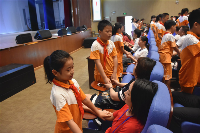 与此同时,一种“乌鸦反哺”的心绪也在孩子们的心田酝酿……勇敢的学生上台互动,大声讲出自己的心声,用行动体验和践行爱的真谛。