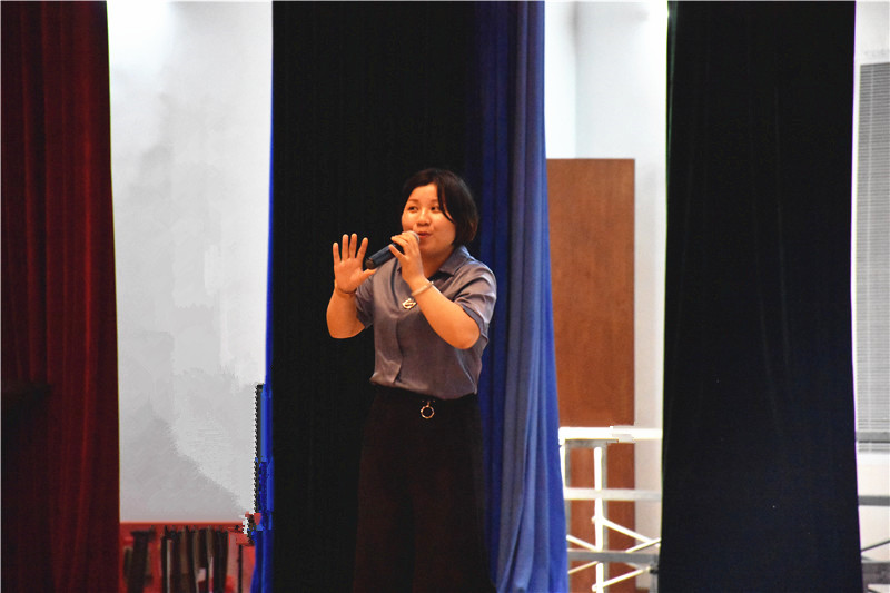 第二场感恩大会,由黄广增城学校校长助理邹岚兰老师为演讲嘉宾。邹老师的声音时而低沉,时而高亢,时而明快,时而悲伤,动情地述说了歌曲《天亮了》背后的故事和汶川地震中来自天堂的短信息,这感人肺腑的爱的故事展示着爱的博大与无私。