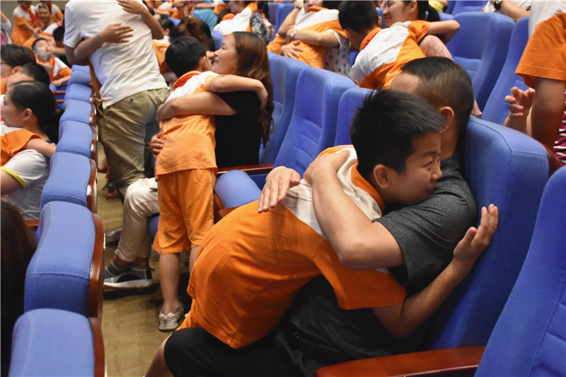 “爱的甜蜜告白”这真情的互动让现场活动推向高潮,所有人的情感奔涌而出,泪水如飞雨泻崖,孩子们痛哭着拥抱家长,齐声呼喊:“爸爸、妈妈,你是我最爱的人!”,一声声发自内心的呼喊,响彻整个会场,一次次深深地鞠躬,让家长们流下了幸福的泪水。