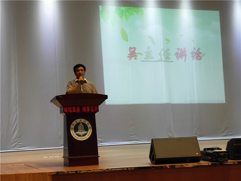 初中部教务处吴茂荣主任介绍了本次期中质量调研检测的成绩,肯定了优势,指明了不足。