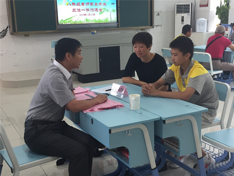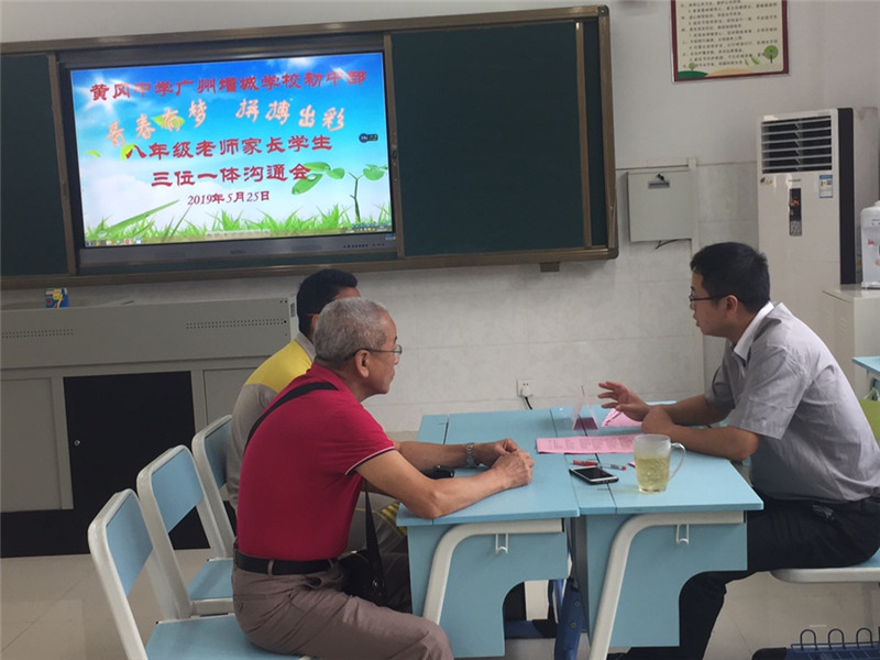 5月25日上午,黄冈中学广州增城学校(简称黄广增城学校)初中部八年级圆满举行了第二学期“学生、家长、老师”三位一体沟通会。