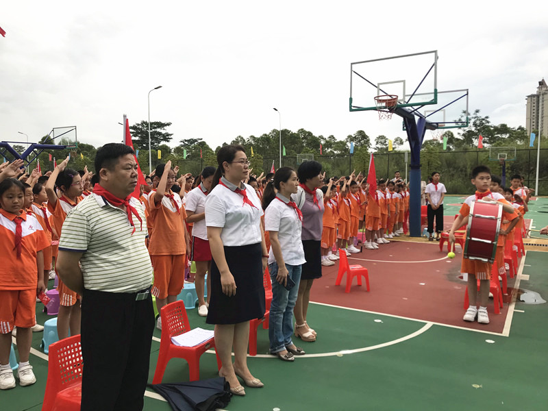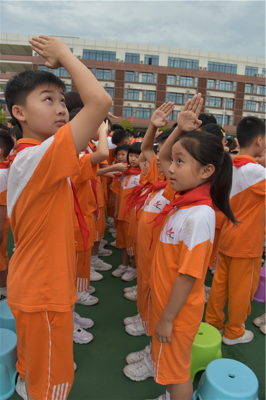 全体少先队员激情澎湃,齐唱队歌,歌声嘹亮,队旗、红领巾格外鲜艳。