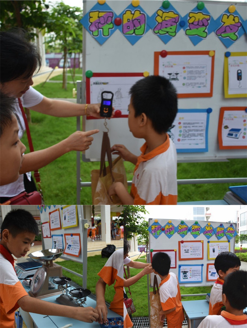 为给学生创设实践机会,让学生学好数学,用好数学,学校还在在跳蚤市场中专门设立了“秤的世界”展区,这里既有做实验用的天平,也有秤小东西的家用弹簧称、常用的杆秤、电子秤等,老师一边讲解关于秤的小知识,一边教同学们怎么使用,大家真是收获多多呀!