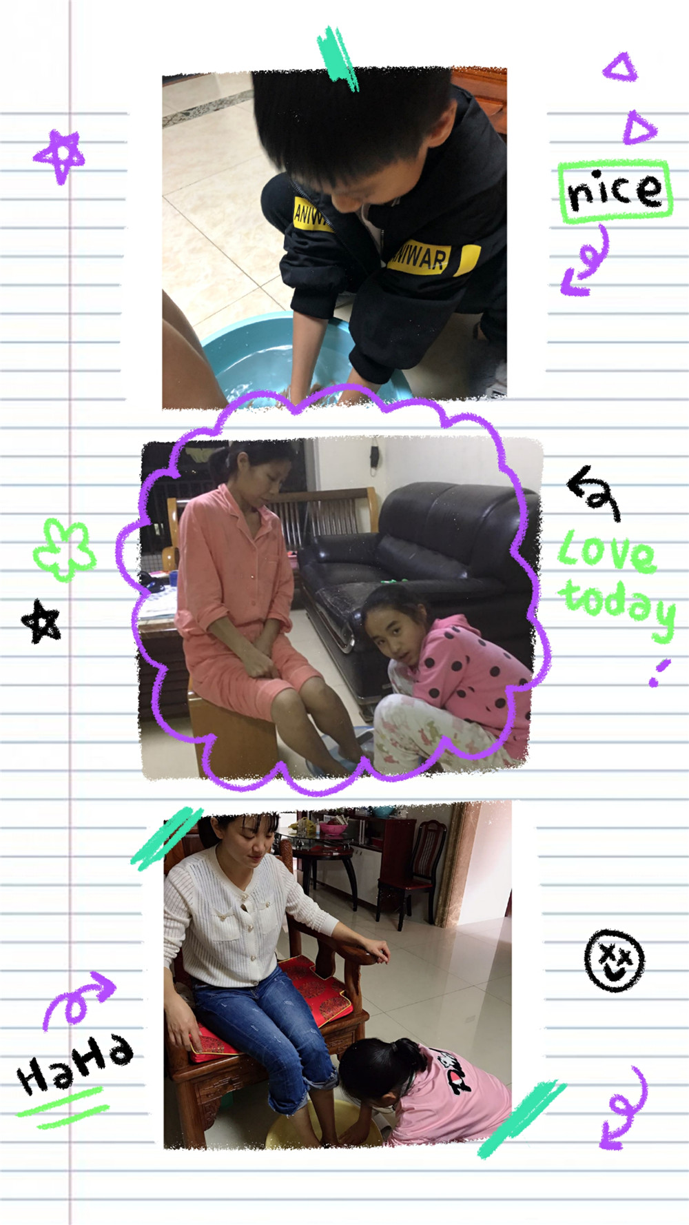 温暖的小手抚摸着父母的双脚,感谢爸爸妈妈为家付出太多太多!