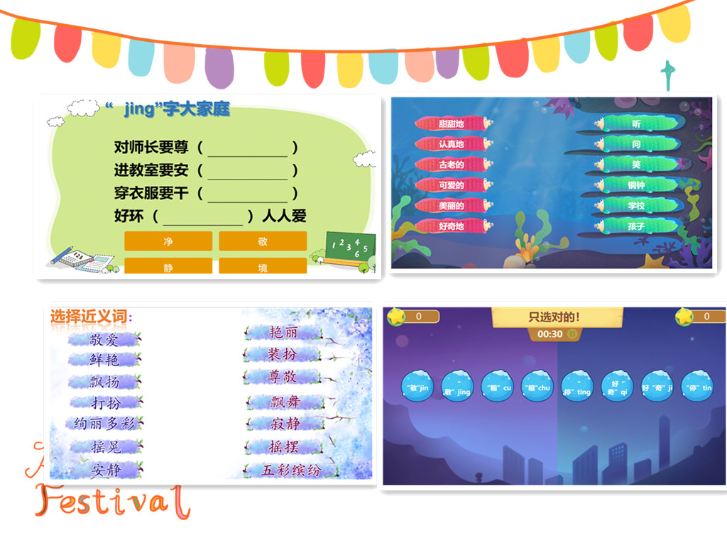 2.每日一学:为了让孩子们线上学习更丰富,老师们精心制作课件,加入各种有趣的小游戏,让孩子们更加投入到课堂,认真思考、积极互动。