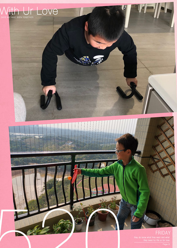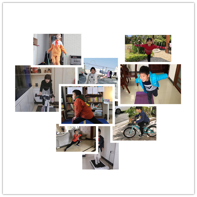 让我们动起来,更健康;一起来,更精彩! 防疫锻炼小能手,宅家花式运动。