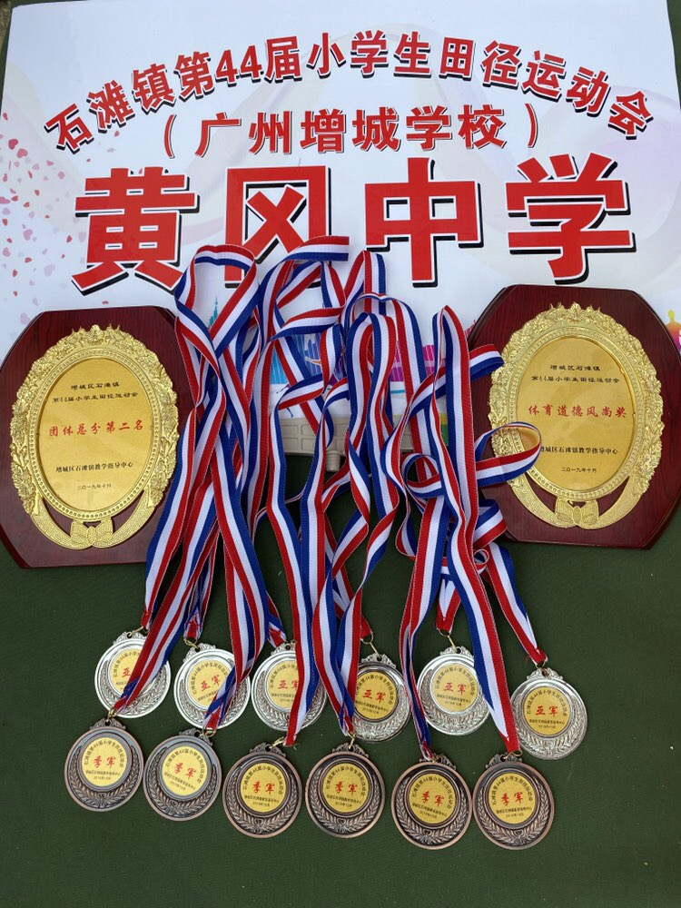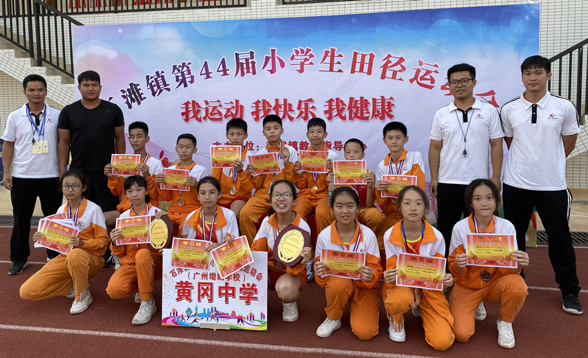10月24日,石滩镇第44届小学生运动会在石滩中学隆重开幕。本次运动会共有24个学校参加,黄冈中学广州增城学校(简称“黄广增城学校”)派出14名运动员进行7个单项,2两个团体项目的角逐,并获得团体总分第二名的历史最好成绩,同时荣获体育道德风尚奖!