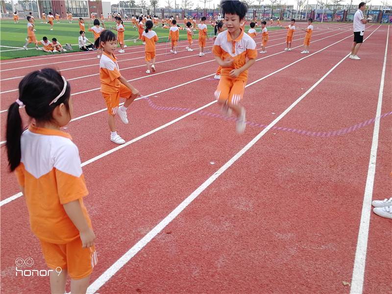 跳绳区里,孩子们精神饱满,跳出了各种花样,绳子如飘带飘逸自如。