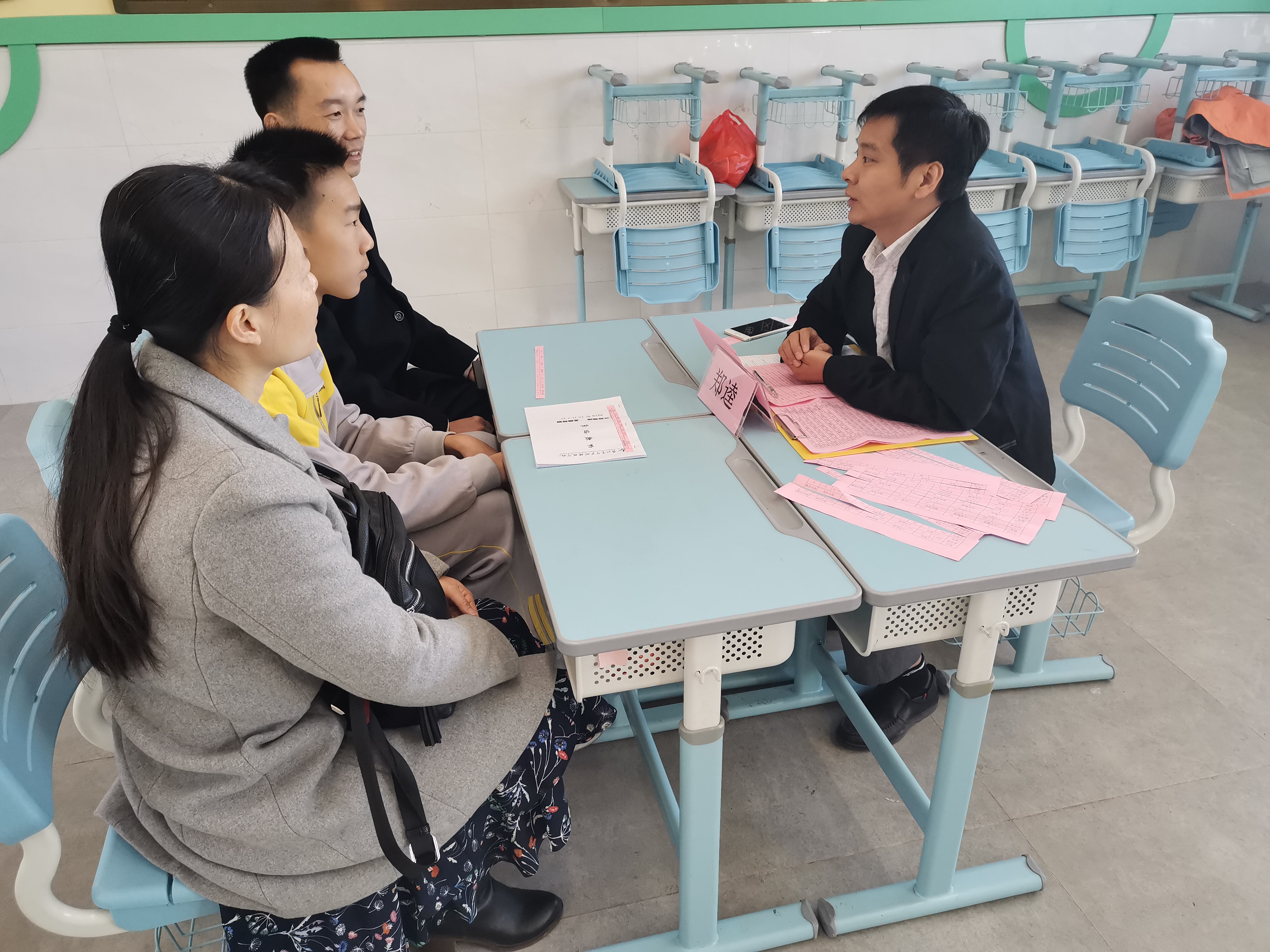 八九年级的三位一体面对面沟通亦紧锣密鼓地进行着——