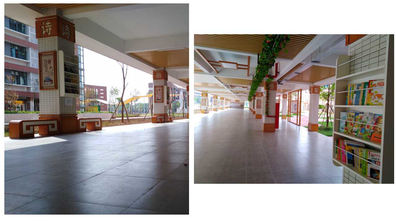 孔圣人像屹立校园,楼廊走道设计者们都精心设计和规划着文化展示的重彩之笔,黄广增城学校新校园成了育人圣地。孩子们穿梭于楼里长廊,晨迎朝阳,晚沐西风,有的不愿走远,驻足于书籍面前,与先贤对话;有的选择自己喜欢的书,或独坐于凳上享受着属于自己的阅读之旅;有的拿了书走到稍远处的花坛上或盘膝而坐,或三三两两互相靠着乐在其中……“尚学”之风渐起,书润“弘德”,以圆“笃行”之志。