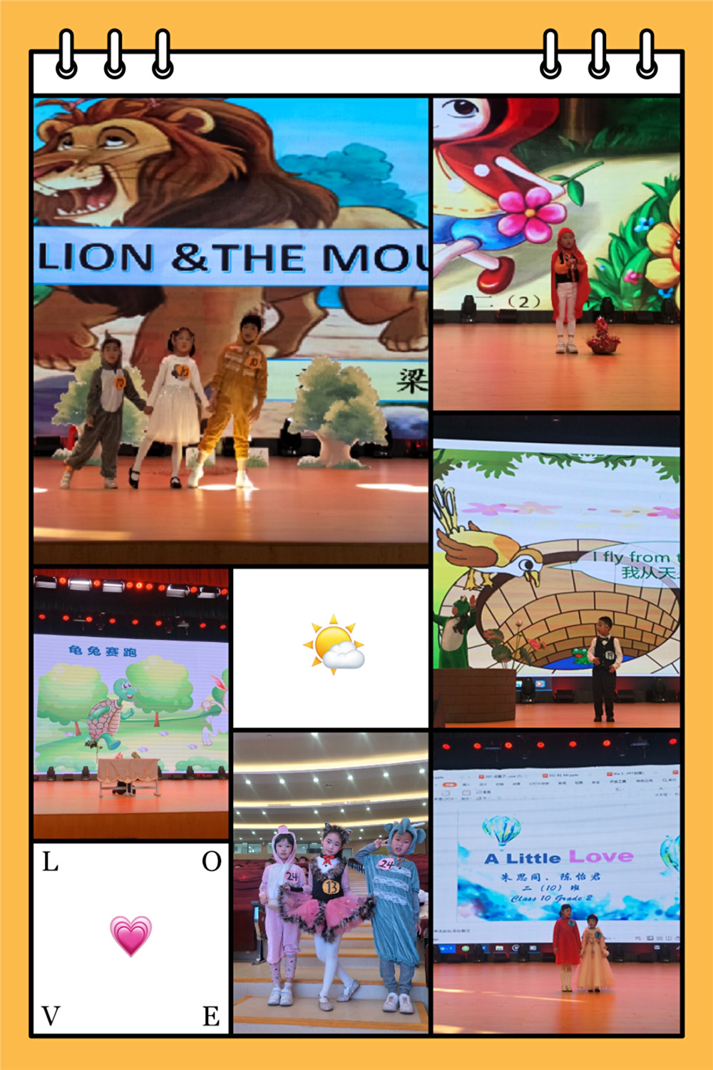 本届英语文化节活动共包含五个部分,分别是:一年级的书法与歌唱大比拼;二年级“我型我秀”英语才艺展示;三年级英语书法、诵读、单词语句运用大比拼;四年级英语舞台秀;而五六年级的大哥哥姐姐们则会为我们带来既炫酷又精彩的舞台剧。