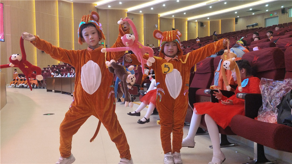 Attention!二年级的小姐姐小哥哥们登台表演的气势可不一般。伴随着一个个栩栩如生的角色,同学们在舞台上亦说、亦唱、亦跳,十八般武艺让大家欢呼雀跃,大呼看得过瘾。