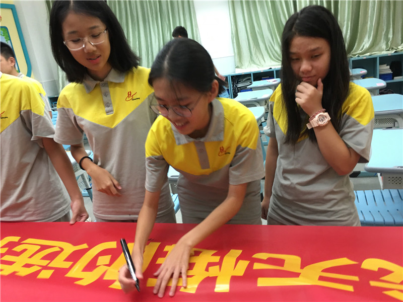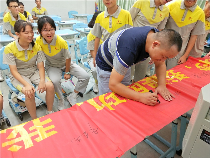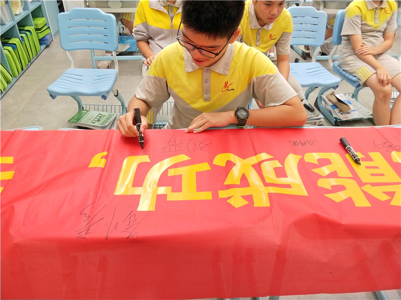 同学们信心满满地签下自的名字。为了自己的理想,全力以赴!