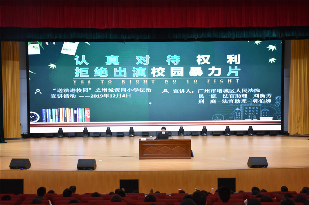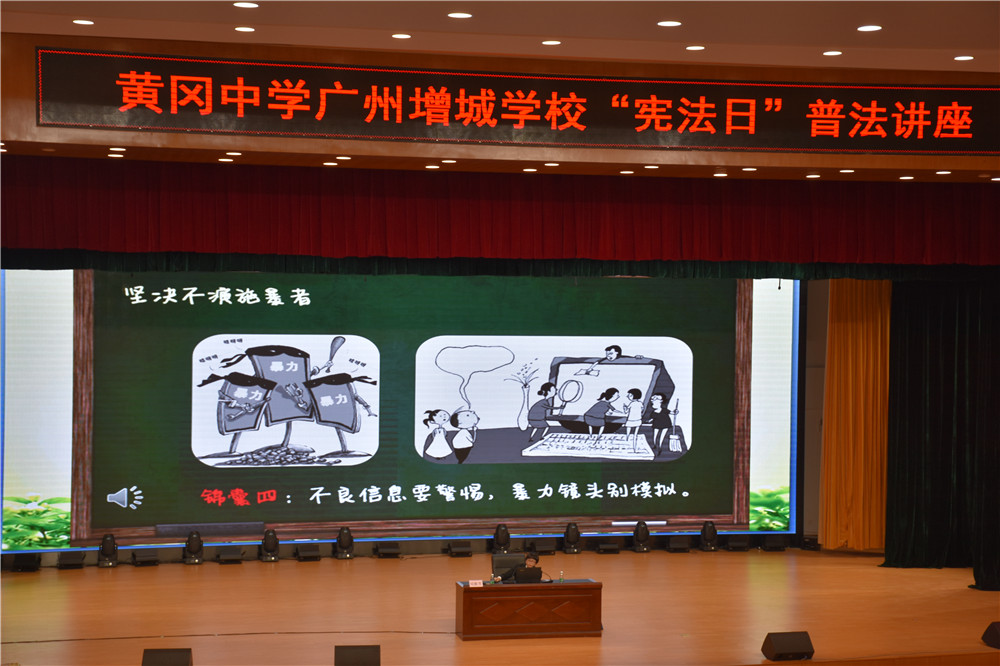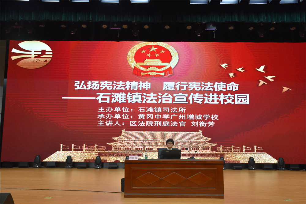 日前,黄冈中学广州增城学校(简称“黄广增城学校”)特邀广州市增城区人民法院韩法官,带领孩子们一起学习宪法,宣讲法律知识。