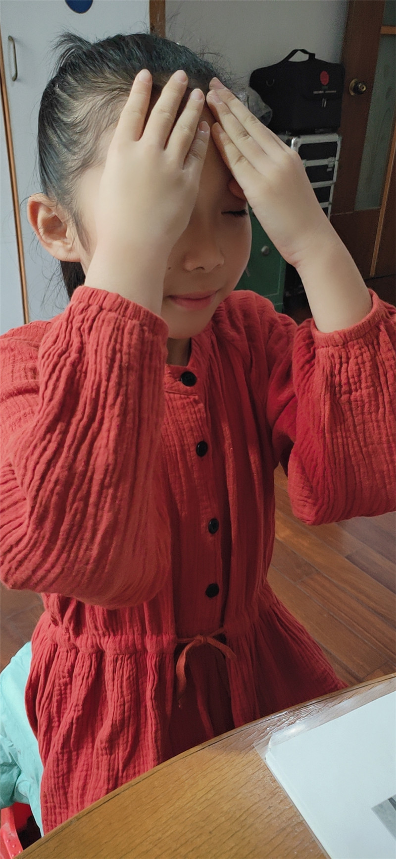 为了减少孩子眼睛的疲劳,老师安排的课间眼保健操和体育锻炼项目,我都会和孩子一起完成。学校安排孩子一边学习一边休息,既保护眼睛,又锻炼身体,真的很科学、很为孩子着想。