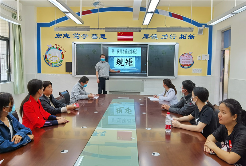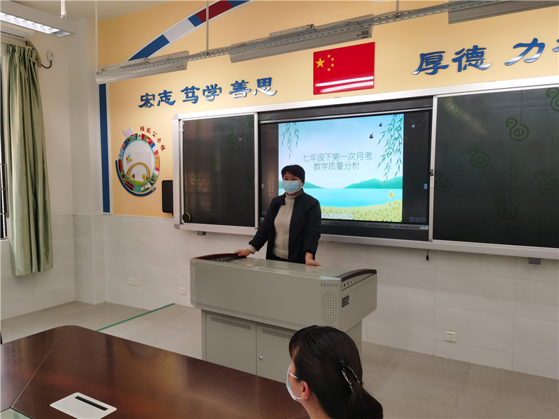 七年级四位班主任分别就本班教学情况进行了详细的分析,通过班内各科数据分析,找出每位学生的优势与不足,确定各班提升对象与方案,定班级下一阶段教学目标。