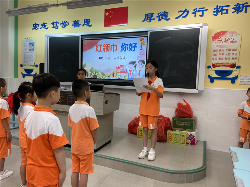 因为疫情原因,今年的入队仪式格外特殊。为了避免人员聚集,入队仪式分别在教室里进行,但这丝毫也不影响孩子们激动的心情!