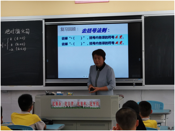 高香华老师讲授课题为《绝对值化简专题》。高老师从学生答题中的易错点出发,以专题的形式深入浅出的讲解了绝对值化简这一难题。设计问题层层深入,抓住关键点,渗透了分类讨论的数学思想,有效地帮助学生突破了难点。