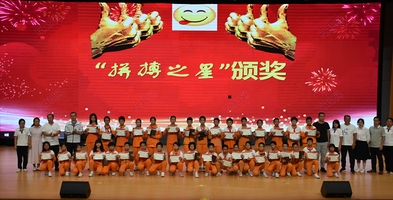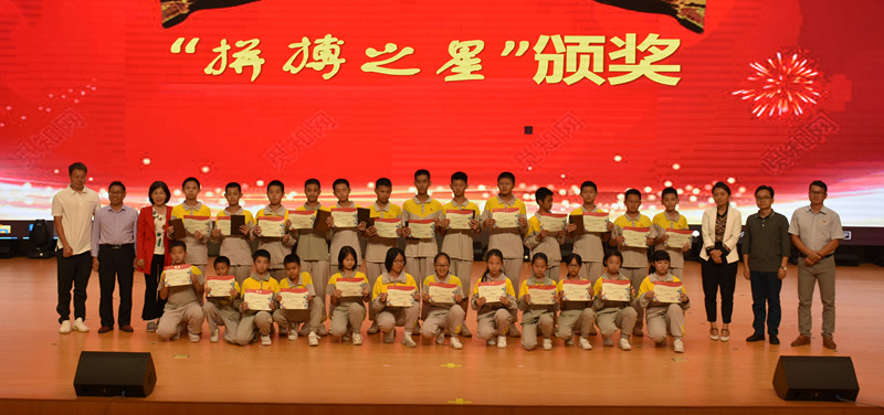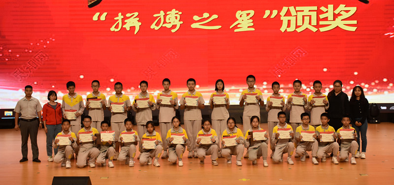 校长蒋晓明及初中部主要领导出席大会,隆重表彰六年级到九年级“学习标兵”“德育之星”“拼搏之星”“拼搏达人”等优秀个人,同时也为32名同学颁发了上一学年的奖学金,最高奖学金达3.5万。