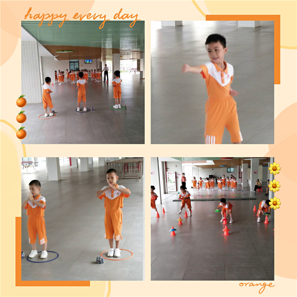 课堂上,老师带领孩子们一起玩“收竹笋”和“屹立不倒”的趣味游戏,分小组进行了闯关接力小比赛。
