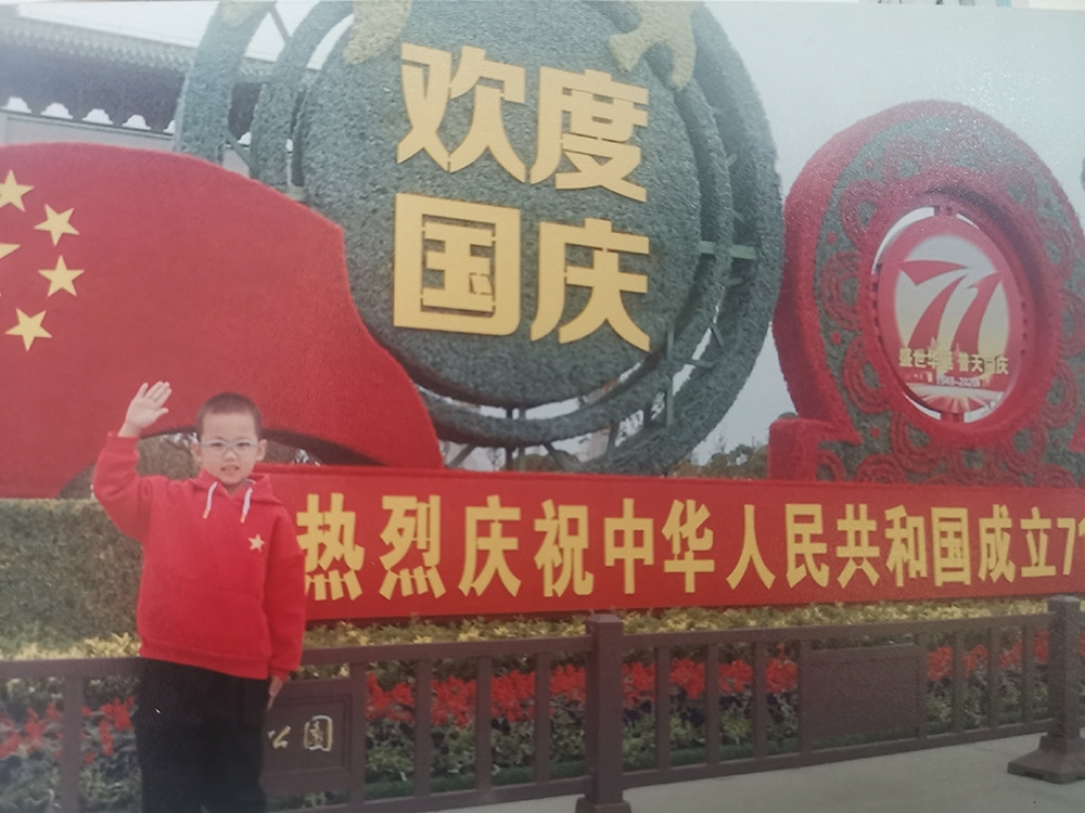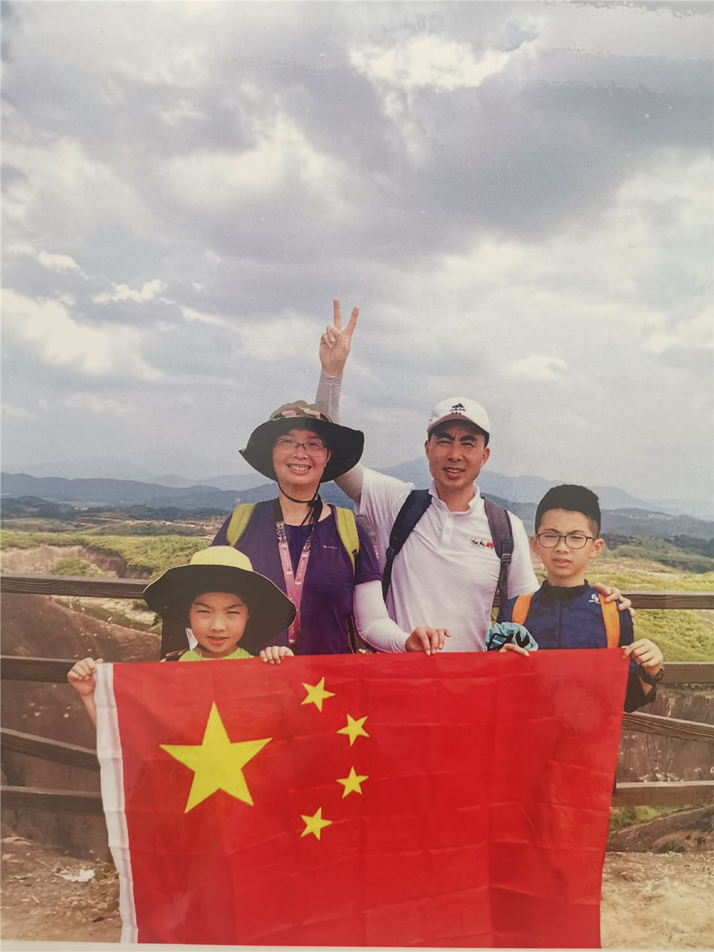 和父母一起参加“寻找最美国旗”摄影活动。