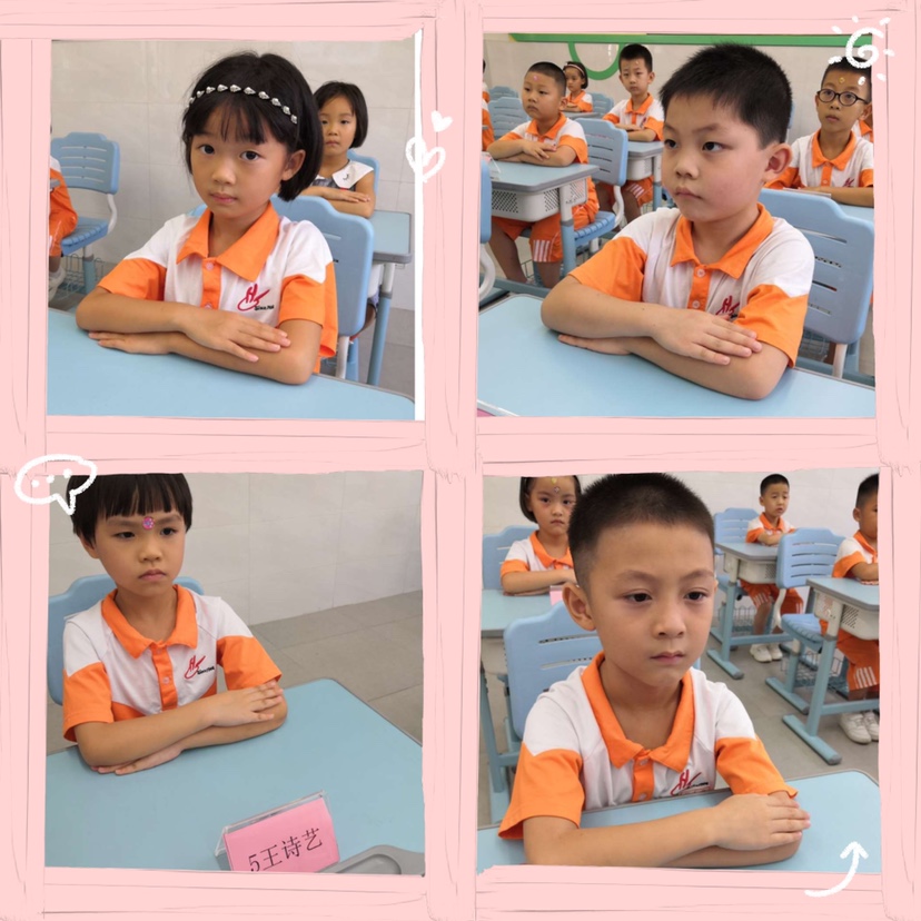 身坐直,脚放平,文具摆整齐,回答问题先举手,我是合格黄广娃!