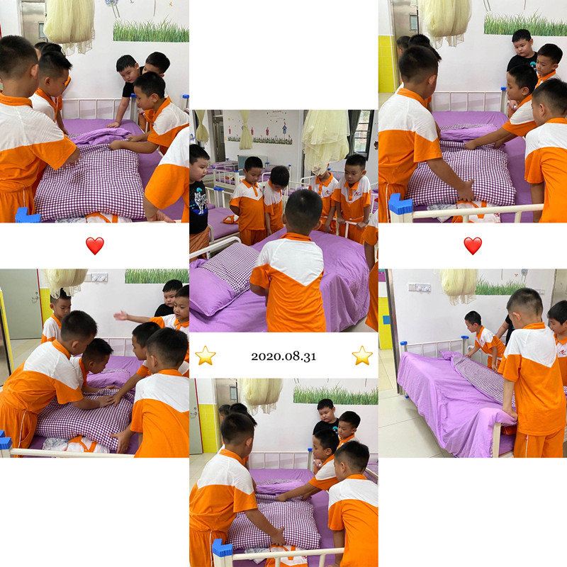 第一次在学校睡觉,和新同学一起生活的感觉真好。换上干净的睡衣,抱着香香的被子睡觉真舒服,有温柔细心的老师照顾和关爱,爸爸妈妈你们放心吧!