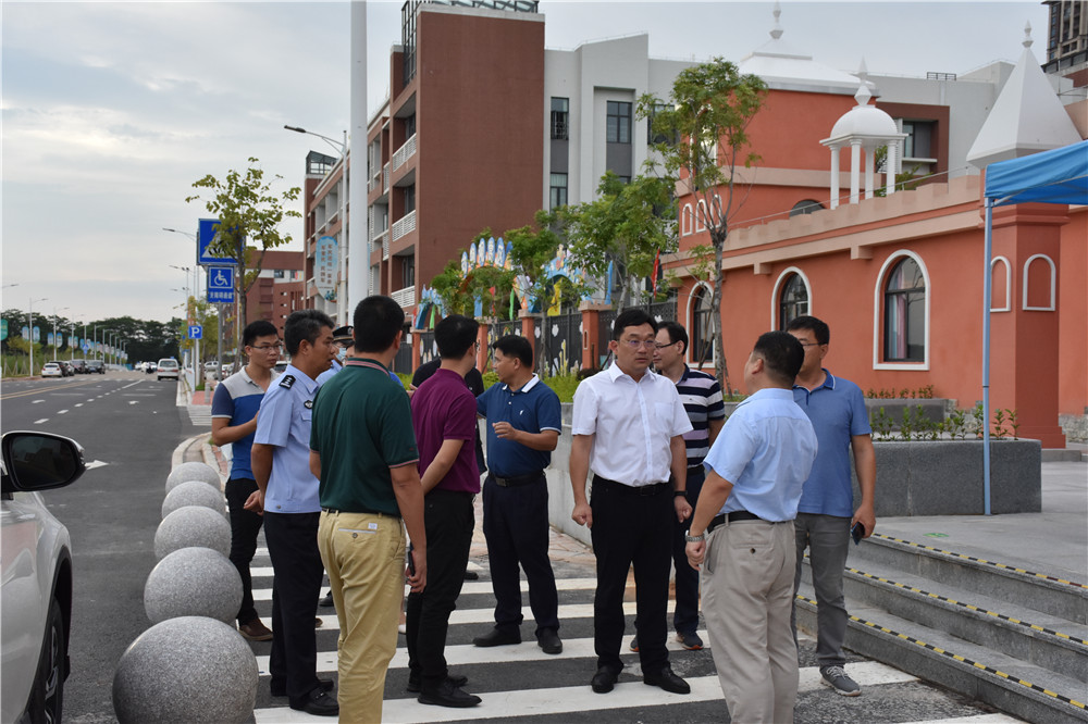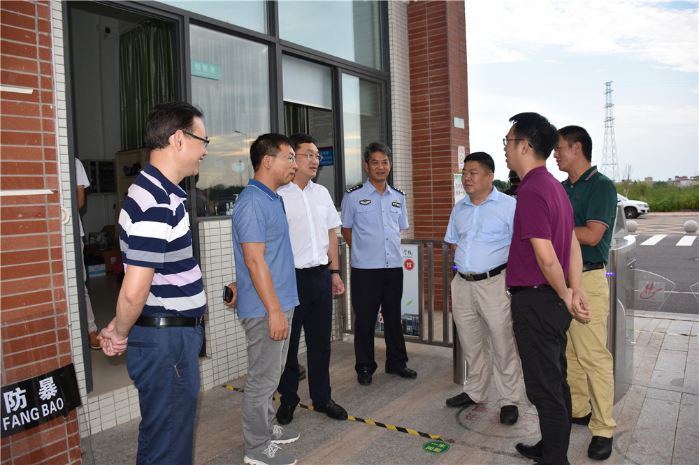 9月24日下午,增城区委常委、政法委李永盛书记和区教育局副局长曾锦波一行指导黄冈中学广州增城学校(简称:“黄广增城学校”,含中小学/幼儿园)校园安保工作。