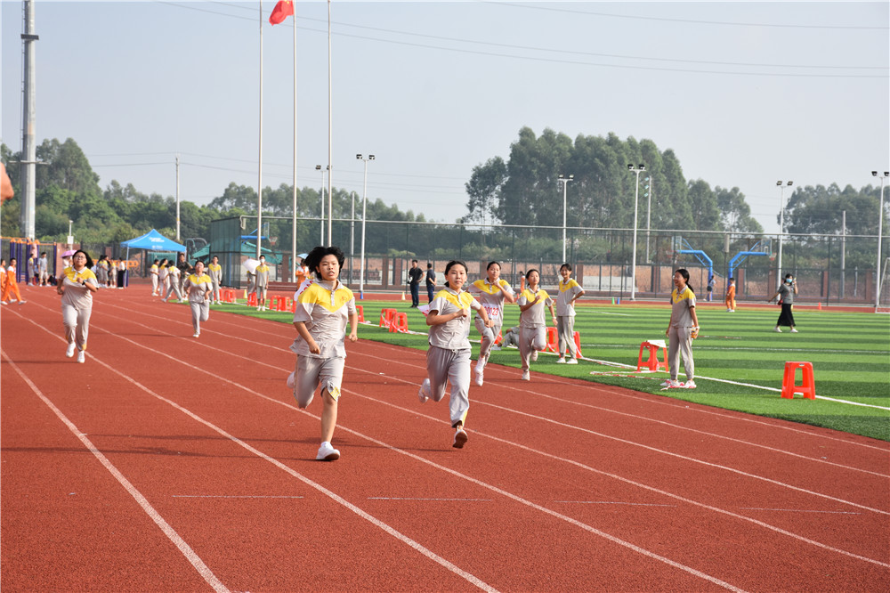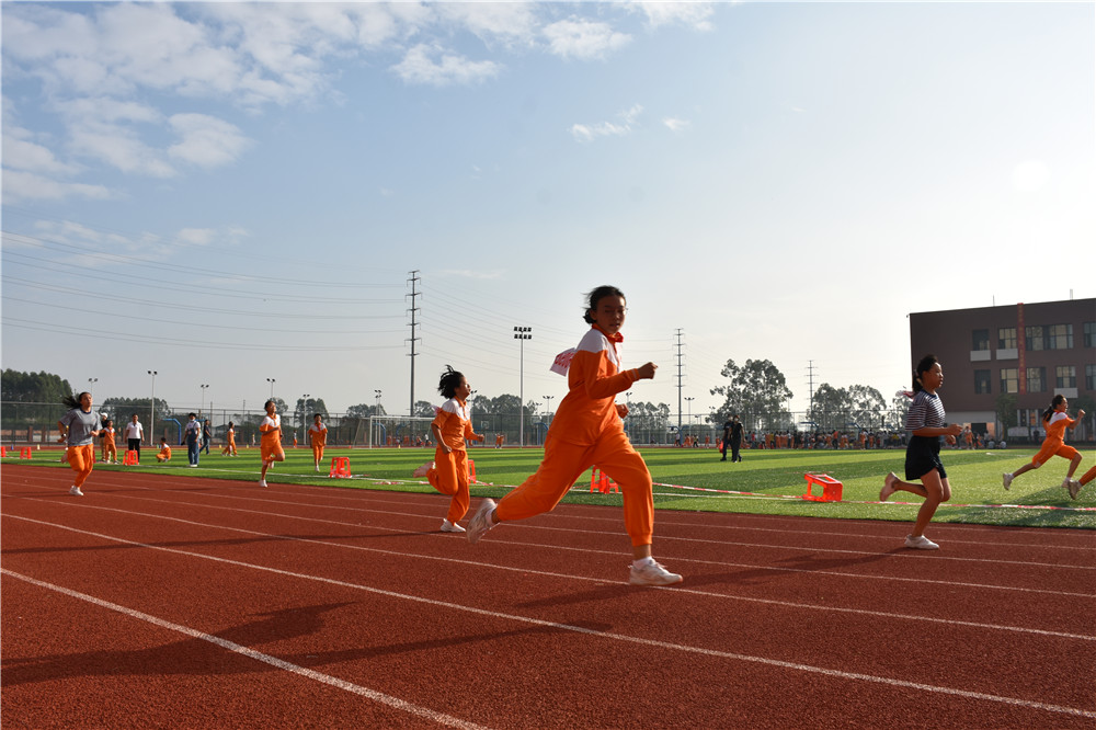 一个个飞离起跑线,似利箭般冲向终点,引得在场同学和老师们的阵阵欢呼。